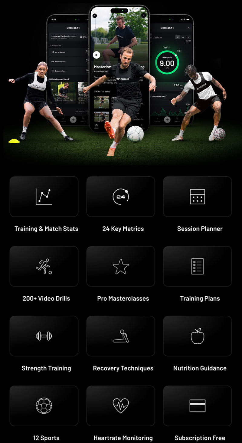 FIFA-approved GPS tracking that gives you personalised coaching, drills, strength training, and nutrition guidance.
